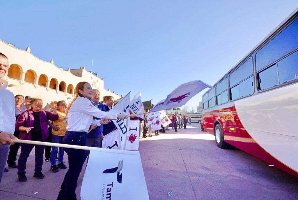 Con visión y compromiso social, la presidenta municipal Carmen Lilia Canturosas Villarreal dio un paso firme para dignificar el servicio de transporte público en Nuevo Laredo, al encabezar el banderazo de salida de 12 nuevas unidades, todos último modelo y equipados con aire acondicionado, una acción que responde directamente a una de las principales demandas ciudadanas.