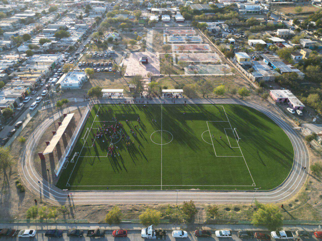 La obra contempló pasto sintético, pintura antiderrapante, mobiliario urbano, estructura, subestación eléctrica y banquetas.